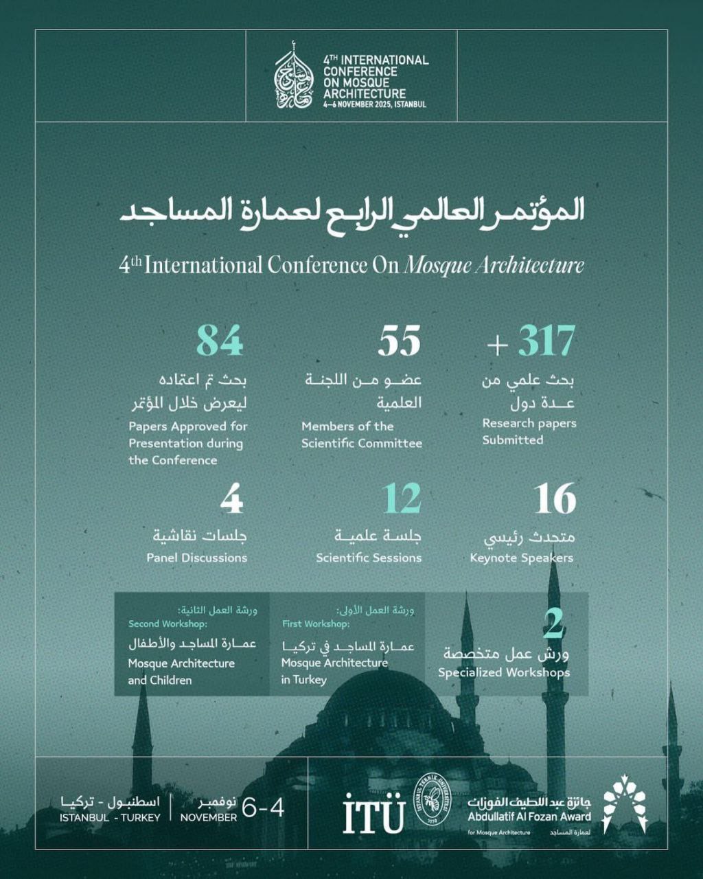 شارك قسم هندسة العمارة في كلية الهندسة – جامعة ديالى في فعاليات المؤتمر الدولي الرابع لعمارة المساجد الذي انعقد في مدينة إسطنبول – تركيا تحت شعار “إعادة التفكير في عمارة المساجد – Rethinking Mosque Architecture”، والذي نظمته مؤسسة وجائزة عبداللطيف الفوزان لعمارة المساجد بالتعاون مع جامعة إسطنبول التقنية (ITU)، وذلك في المبنى العثماني التاريخي لكلية العمارة (TASKISLA).