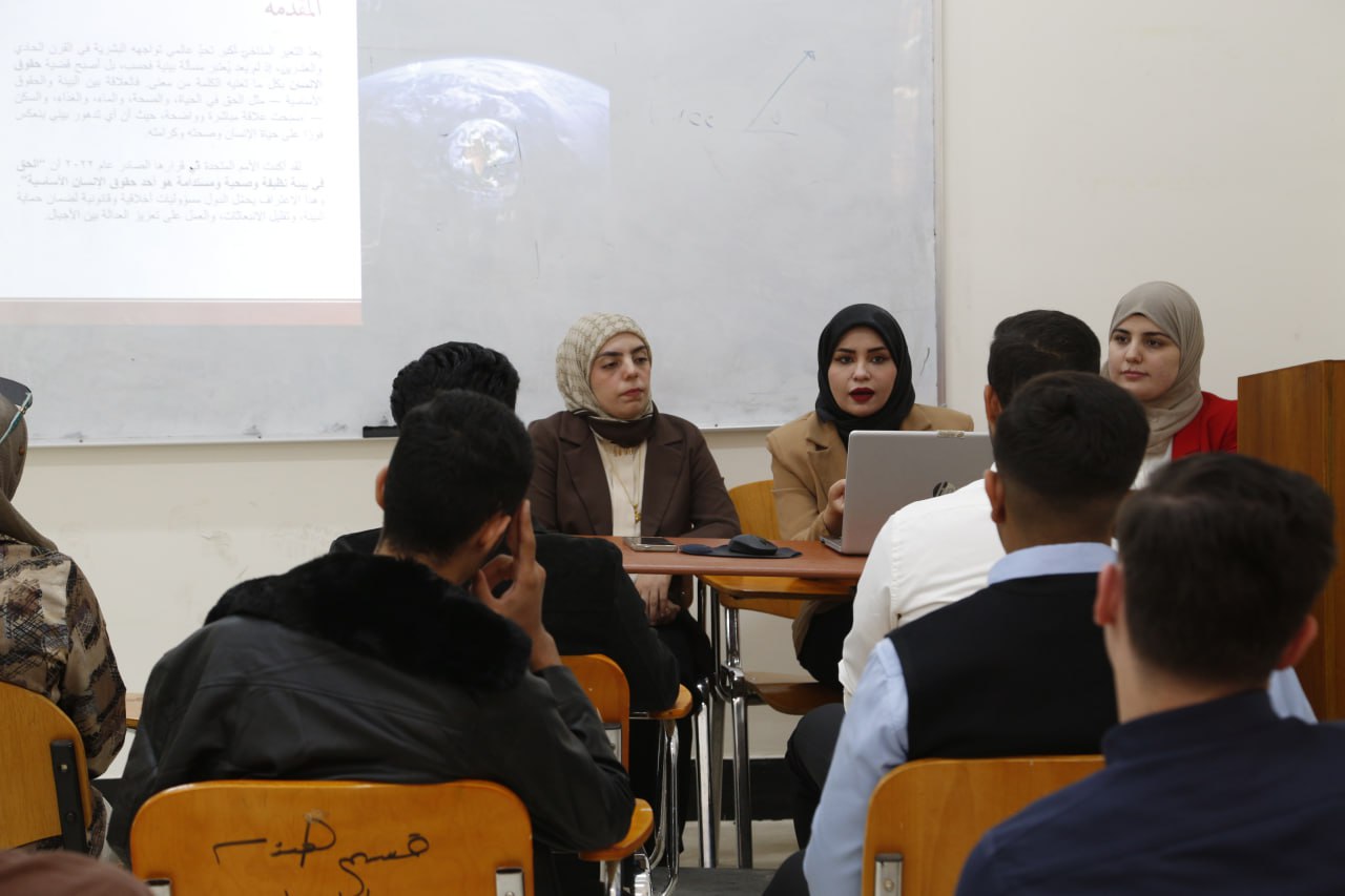أقام قسم هندسة الطرق والمطارات في كلية الهندسة بجامعة ديالى، وبالتعاون مع وحدة حقوق الإنسان، ندوة علمية بعنوان “التغيير المناخي كقضية حقوق الإنسان: حق الأجيال القادمة في بيئة سليمة” حاضر فيها كل من أ.م.د سهى فالح مهدي، أ.م.د رويدة حسين علي، وم.د زينب حسن علي، وبحضور عدد من التدريسيين والطلبة والمهتمين بالبيئة وحقوق الإنسان.