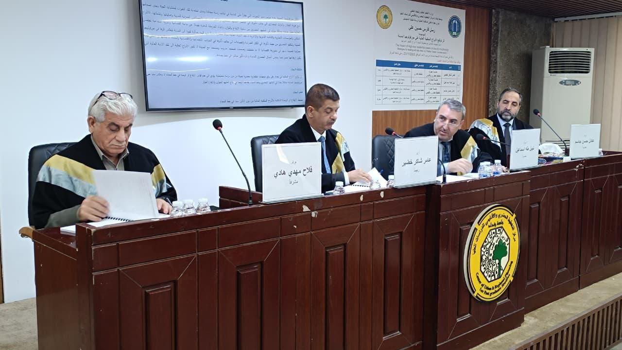 تدريسي من كلية الهندسة يشارك في مناقشة رسالة ماجستير حول تأثير الأبنية السكنية العالية في مورفولوجيا المدن وخطوط السماء