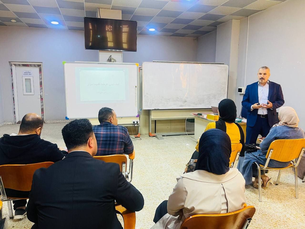 أقام القسم العلمي في قسم الهندسة الإلكترونية – كلية الهندسة ورشة تدريبية بعنوان «كيف تبني عرضًا تقديميًا مؤثرًا»، قدّمها الأستاذ المساعد الدكتور روكان علي أحمد، و بمشاركة عدد من التدريسيين والطلبة.
