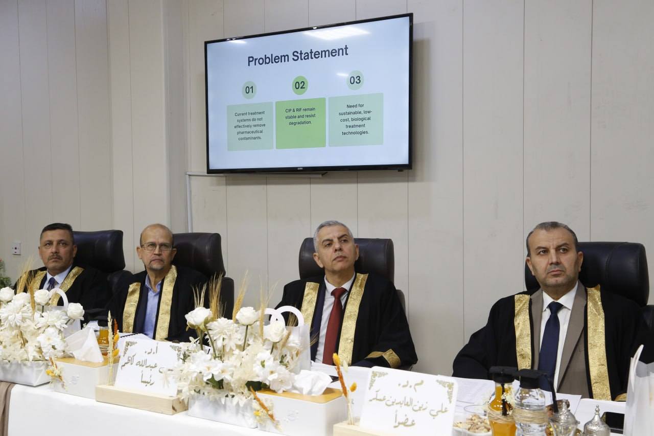 كلية الهندسة تناقش رسالة ماجستير حول المعالجة الحيوية لطحالب الكلوريلا لإزالة المضادات الحيوية من المحاليل المائية