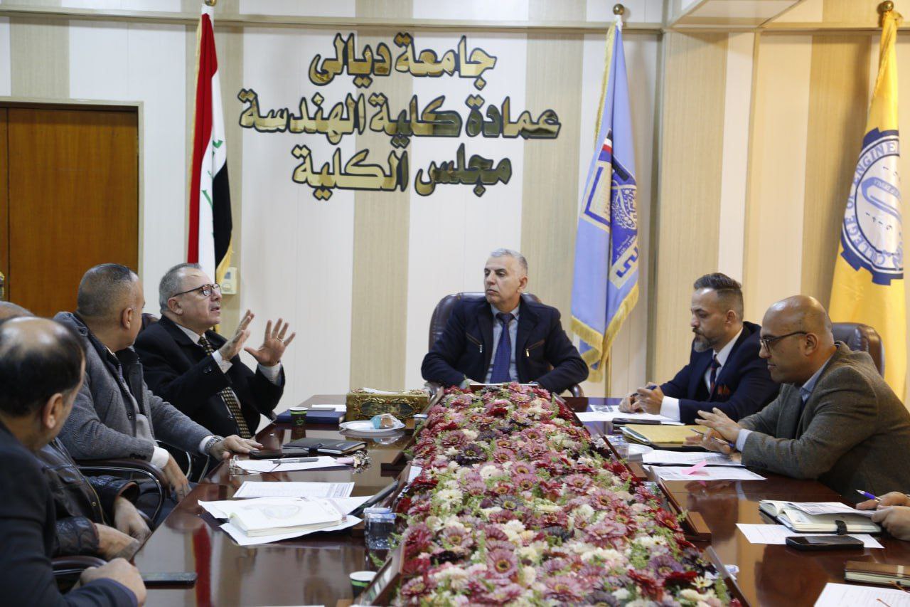 عقد مجلس كلية الهندسة – جامعة ديالى جلسته الخامسة المفتوحة للعام الدراسي 2025–2026، يوم الأربعاء الموافق 7/1/2026، على قاعة عمادة الكلية، برئاسة السيد عميد الكلية الأستاذ الدكتور أنيس عبد الله كاظم المحترم، وبحضور كافة أعضاء المجلس.