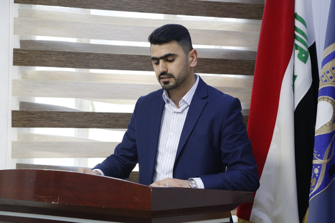 قدّمها الباحث أحمد سعد محمد علي، وبحضور السيد عميد الكلية الأستاذالدكتورأنيس عبدالله كاظم المحترم.