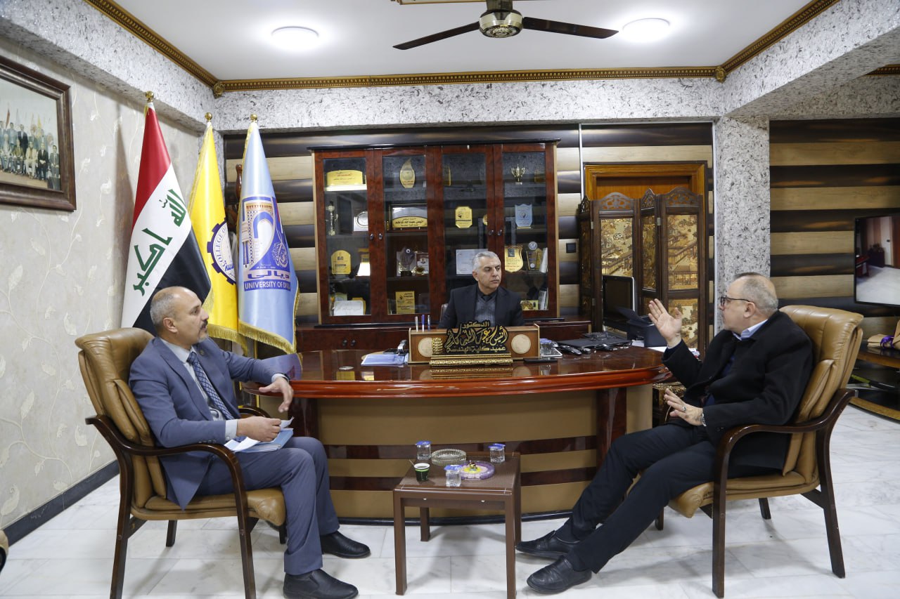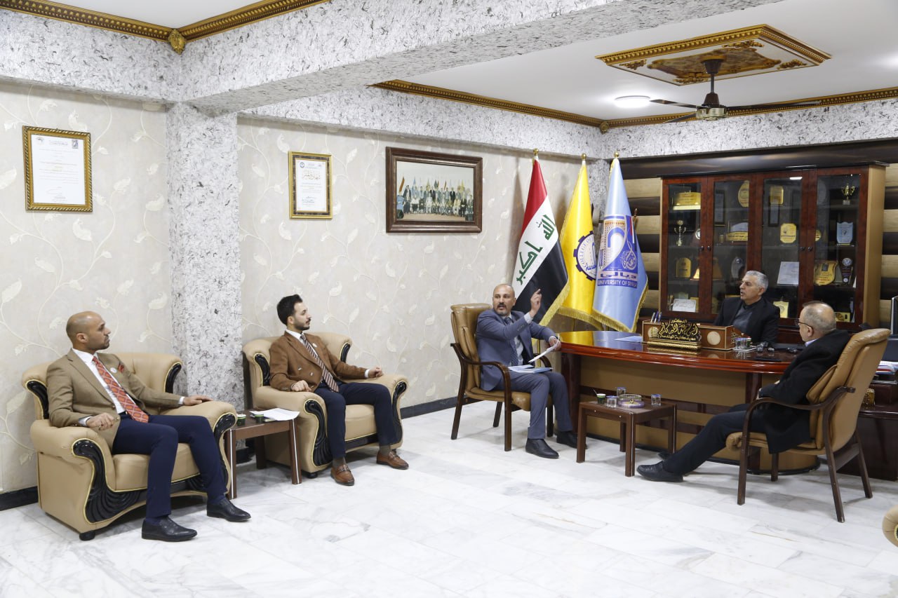 استقبل السيد عميد كلية الهندسة الأستاذ الدكتور أنيس عبد الله كاظم والمعاون العلمي للشؤون العلمية الأستاذ الدكتور جبار قاسم جبار لجنة التنمية المستدامة، وذلك يوم الأربعاء الموافق 21 كانون الثاني 2026، في إطار متابعة تنفيذ برامج وخطط الاستدامة داخل الكلية وتعزيز مسارات العمل البيئي والتنموي في البيئة الجامعية.