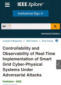 يهدف البحث إلى دراسة وتحليل إمكانية التحكم وإمكانية الملاحظة في أنظمة الشبكات الذكية السيبرانية–المادية في ظل الهجمات الإلكترونية العدائية، ولاسيما هجمات رفض الخدمة (DoS). وقد أُنجز هذا البحث بالتعاون مع باحثين من جامعة Prairie View A&M University وجامعة Texas Rio Grande Valley في الولايات المتحدة الأمريكية.