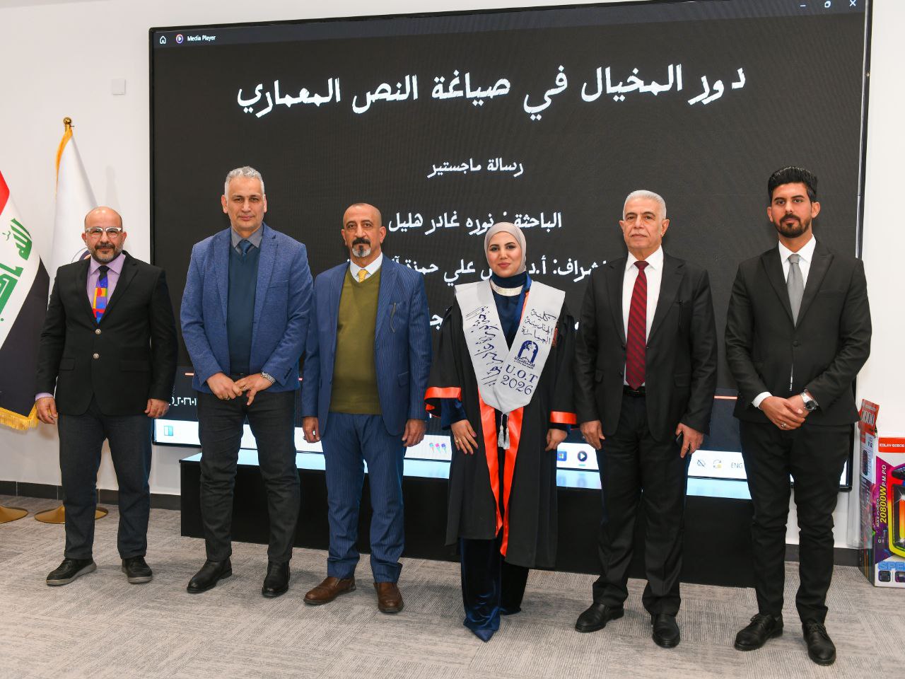 حصلت المهندسة وموظفة كلية الهندسة نوره غادر هليل على شهادة الماجستير، بعد مناقشة رسالة الماجستير الموسومة (دور المخيال في صياغة النص المعماري) في كلية هندسة العمارة / الجامعة التكنولوجية.