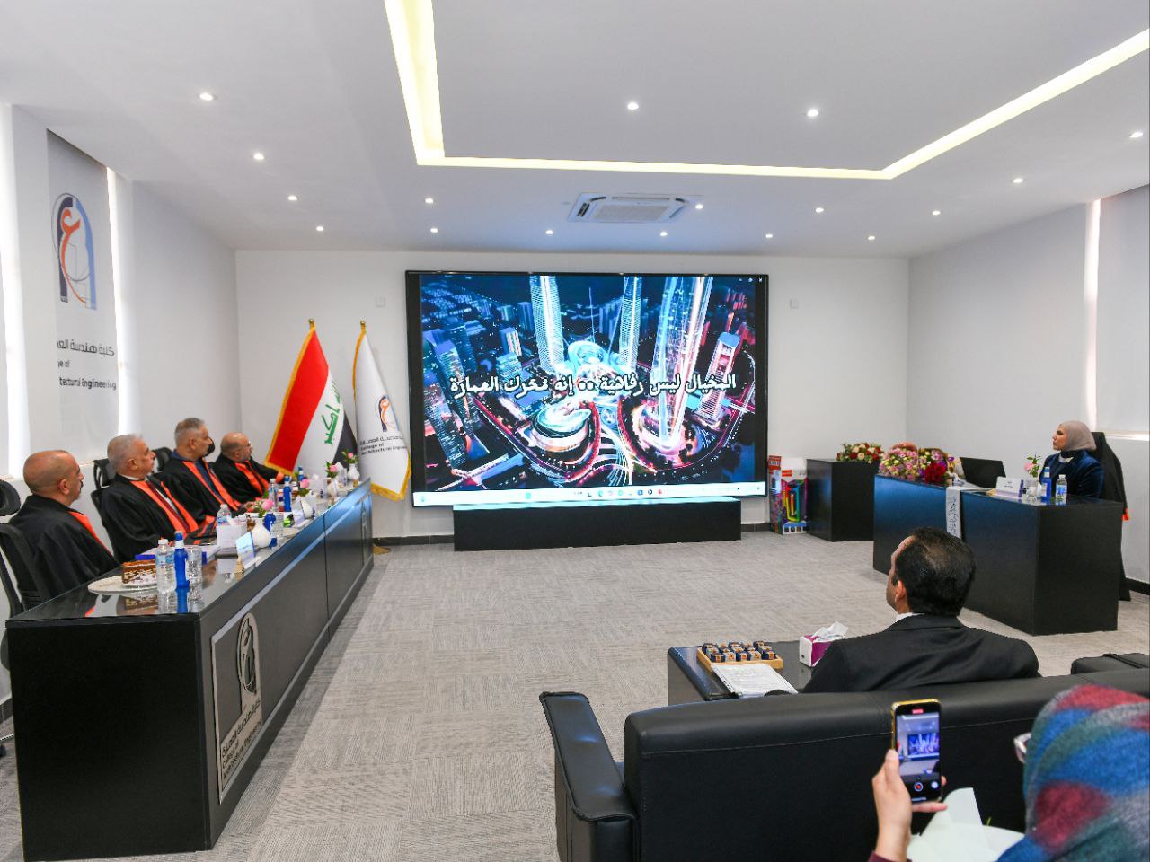 وتألفت لجنة المناقشة من السادة: أ.د. عبد الله سعدون سلمان رئيسًا، وأ.د. أحمد عبد العال رشيد عضوًا، وم.د. بشار شامل كاظم عضوًا، وأ.د. عباس علي حمزة عضوًا ومشرفًا.