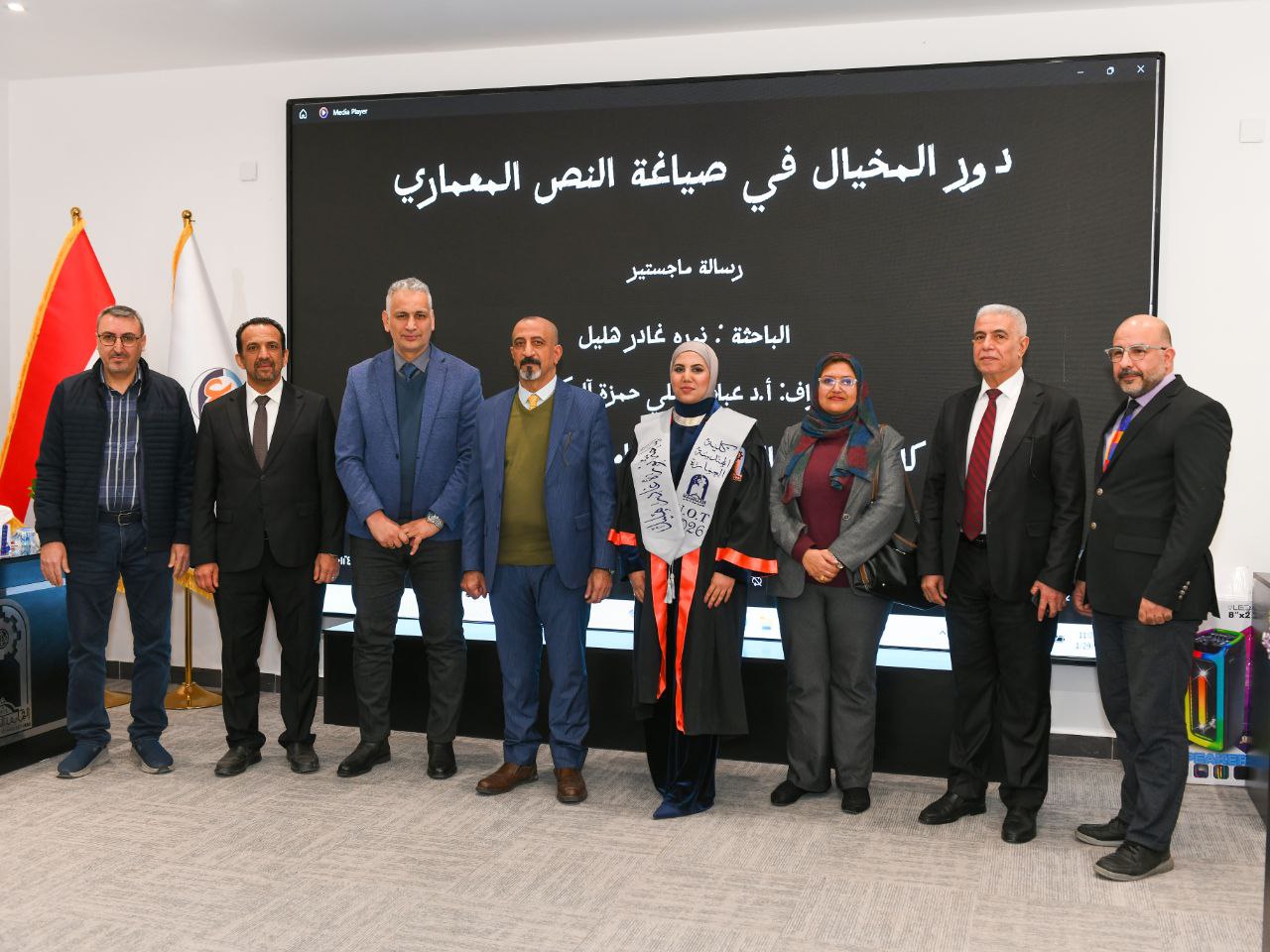وتوصلت الباحثة إلى أن المخيال يُعد عنصرًا بنيويًا أساسًا في إنتاج النص المعماري، وأن فاعليته تتجلى في قدرته على ربط المعنى بالصيغة، وتحويل التجربة الذهنية والثقافية للمصمم إلى خطاب معماري قابل للتأويل، بما يسهم في إغناء العمارة دلاليًا وجماليًا.