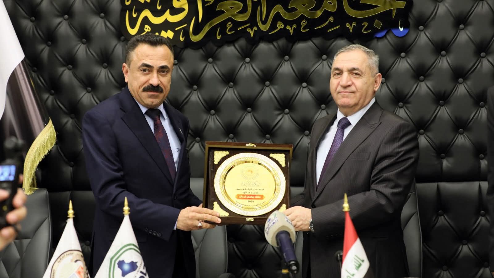 عميد كلية الهندسة بجامعة ديالى يشارك في اجتماع لجنة العمداء ويُكرَّم من قبل رئيس الجامعة العراقية