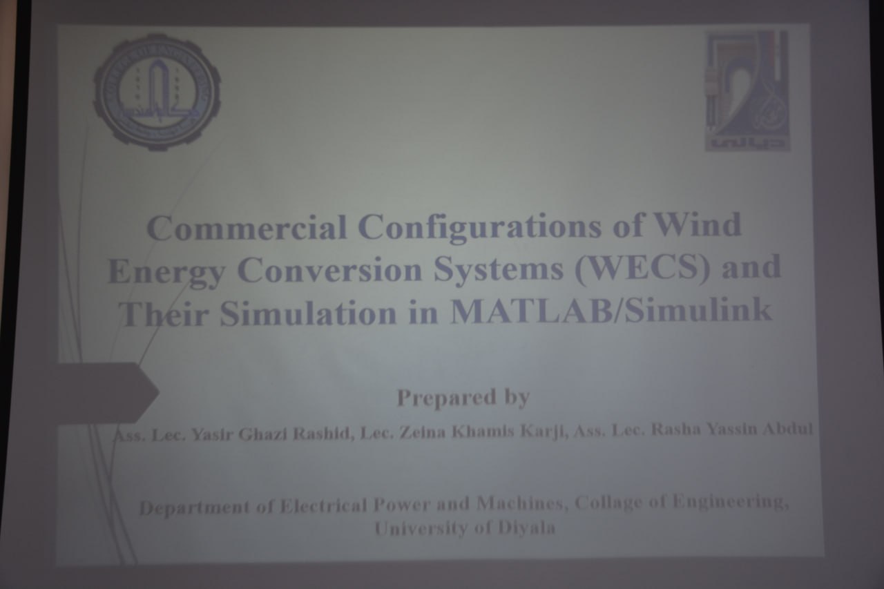 أقام قسم هندسة القدرة والمكائن الكهربائية في كلية الهندسة – جامعة ديالى دورة علمية بعنوان التكوينات التجارية لأنظمة تحويل طاقة الرياح ومحاكاتها باستخدام برنامج (MATLAB/Simulink) ،