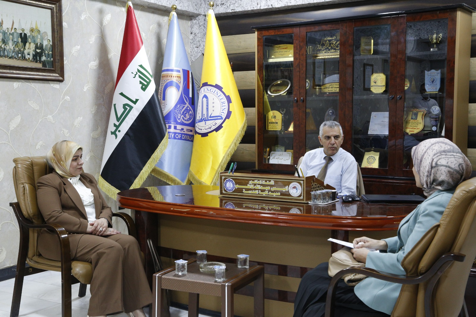 في إطار تعزيز التعاون العلمي بين كليات جامعة ديالى، استقبل السيد عميد كلية الهندسة الأستاذ الدكتور أنيس عبد الله كاظم أساتذة وطلبة قسم علوم الكيمياء في كلية العلوم بجامعة ديالى في مكتبه، وذلك ضمن زيارة علمية إلى قسم الهندسة الكيميائية تهدف إلى دعم الجانب العملي لطلبة المرحلة الثالثة.