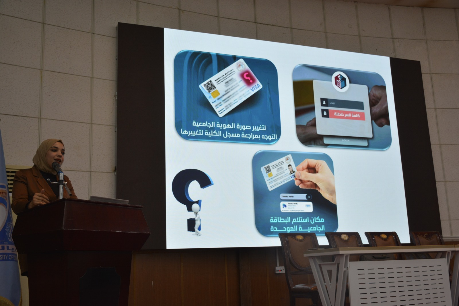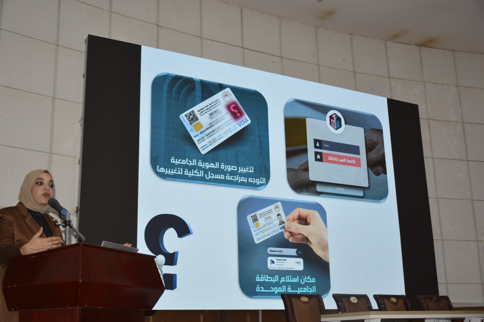 وتناولت الورشة شرحًا مفصلًا لآلية التسجيل في تطبيق HEPIQ وخطوات تفعيل الحساب، إلى جانب استعراض أبرز الخدمات الإلكترونية التي يوفّرها التطبيق، فضلاً عن تسليط الضوء على أهمية الهوية الإلكترونية الجامعية الموحدة ومميزاتها، بما في ذلك إمكانية استخدامها كبطاقة دفع إلكترونية.