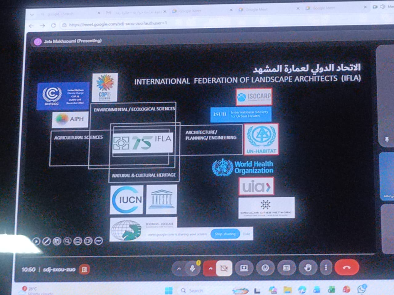 وشهدت الجلسة مشاركة نخبة من الشخصيات الأكاديمية والمعمارية، من بينهم جالة المخزومي، المهندسة المعمارية والأكاديمية المتخصصة في تصميم الفضاءات المفتوحة ونائبة رئيس الاتحاد الدولي لمعماري المشهد (IFLA)، وأحمد الملاك، المهندس المعماري والمدير المؤسس لجائزة تميز ورئيس مهرجان العمارة العربي ومحاضر في جامعة كوفنتري.