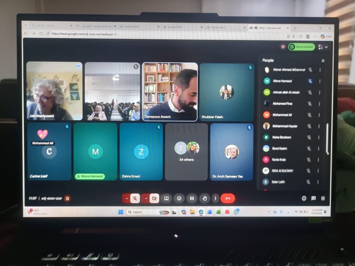 شارك قسم هندسة العمارة في كلية الهندسة بجامعة ديالى، ممثلاً بأساتذته وطلبة المرحلتين الرابعة والخامسة، في جلسة حوارية (Online) تناولت محاور جائزة رفعة الجادرجي 2026، والتي نظمتها جائزة تميز بوصفها إحدى أبرز المنصات الداعمة للخطاب المعماري العربي المعاصر.