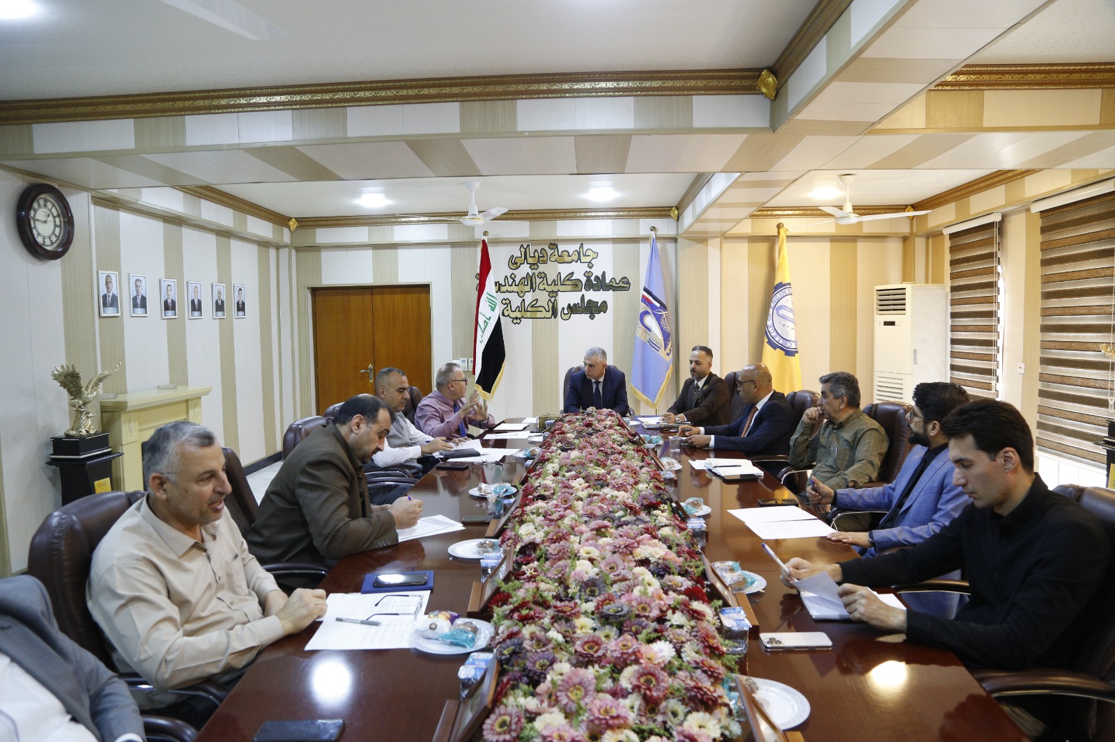 عقد مجلس كلية الهندسة في جامعة ديالى جلسته التاسعة المفتوحة للعام الدراسي 2025–2026، اليوم الثلاثاء الموافق 21/4/2026، على قاعة عمادة الكلية، برئاسة السيد عميد الكلية الأستاذ الدكتور أنيس عبد الله كاظم المحترم، وبحضور السادة أعضاء المجلس.