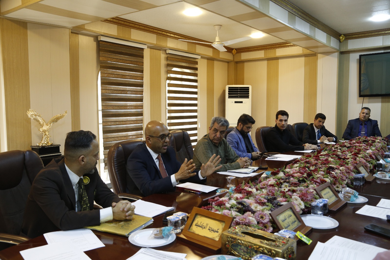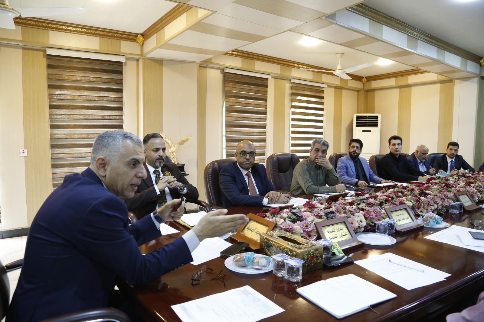 واستهل السيد عميد الكلية الجلسة بالترحيب بالحضور، مؤكداً أهمية الاجتماعات الدورية لمجلس الكلية في رسم السياسات الأكاديمية والإدارية ومتابعة سير العملية التعليمية، بما ينسجم مع توجّهات جامعة ديالى ووزارة التعليم العالي والبحث العلمي في تطوير المؤسسات الأكاديمية والارتقاء بمستوى الأداء العلمي والإداري.