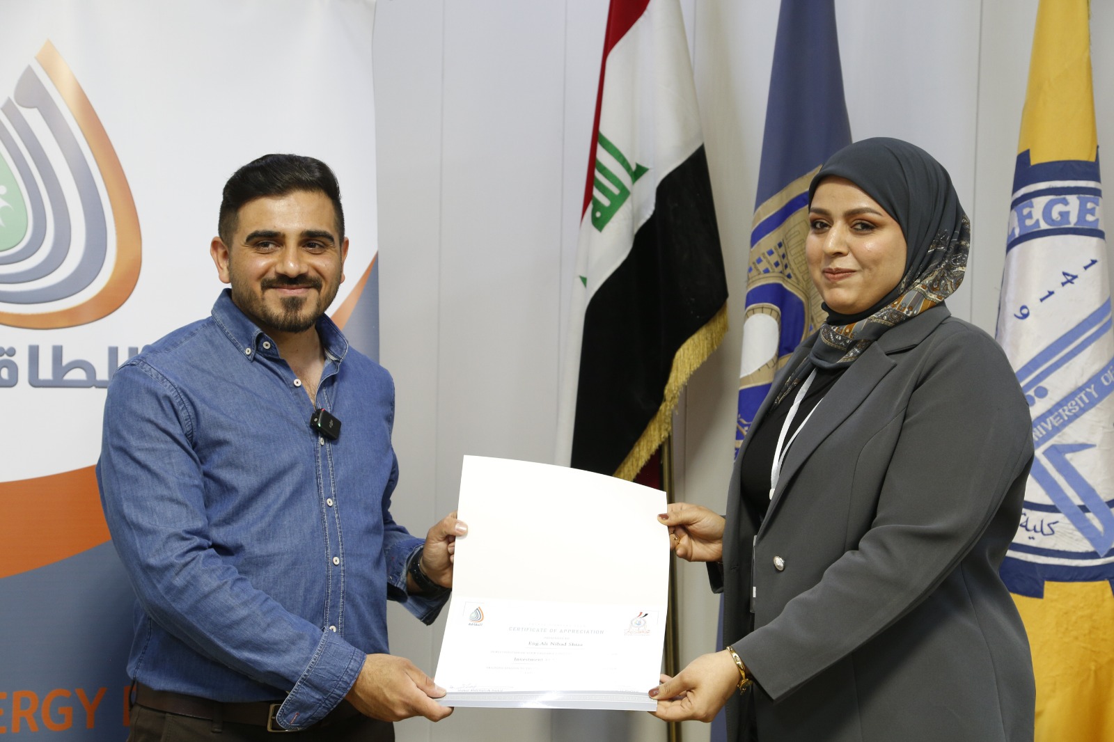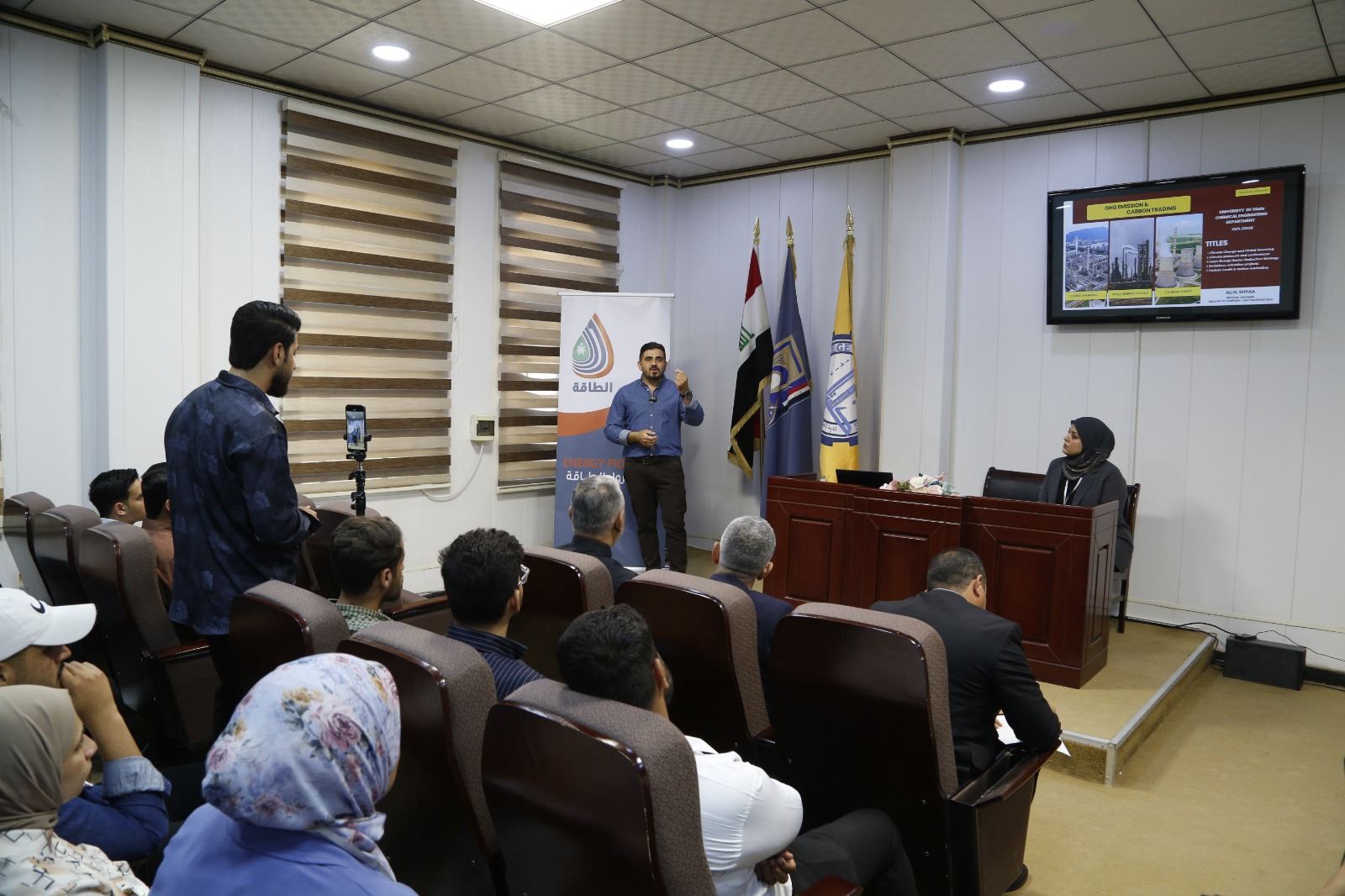 حاضر في الدورة كلٌّ من م.م شهد عبد الحافظ والمهندس علي نهاد شياع من فريق رواد الطاقة، حيث قدّما عرضاً علمياً وتطبيقياً تناول آليات إدارة الانبعاثات الكربونية وسبل استثمارها اقتصادياً، مستندين إلى خبراتهما في قطاعي الطاقة والبيئة.